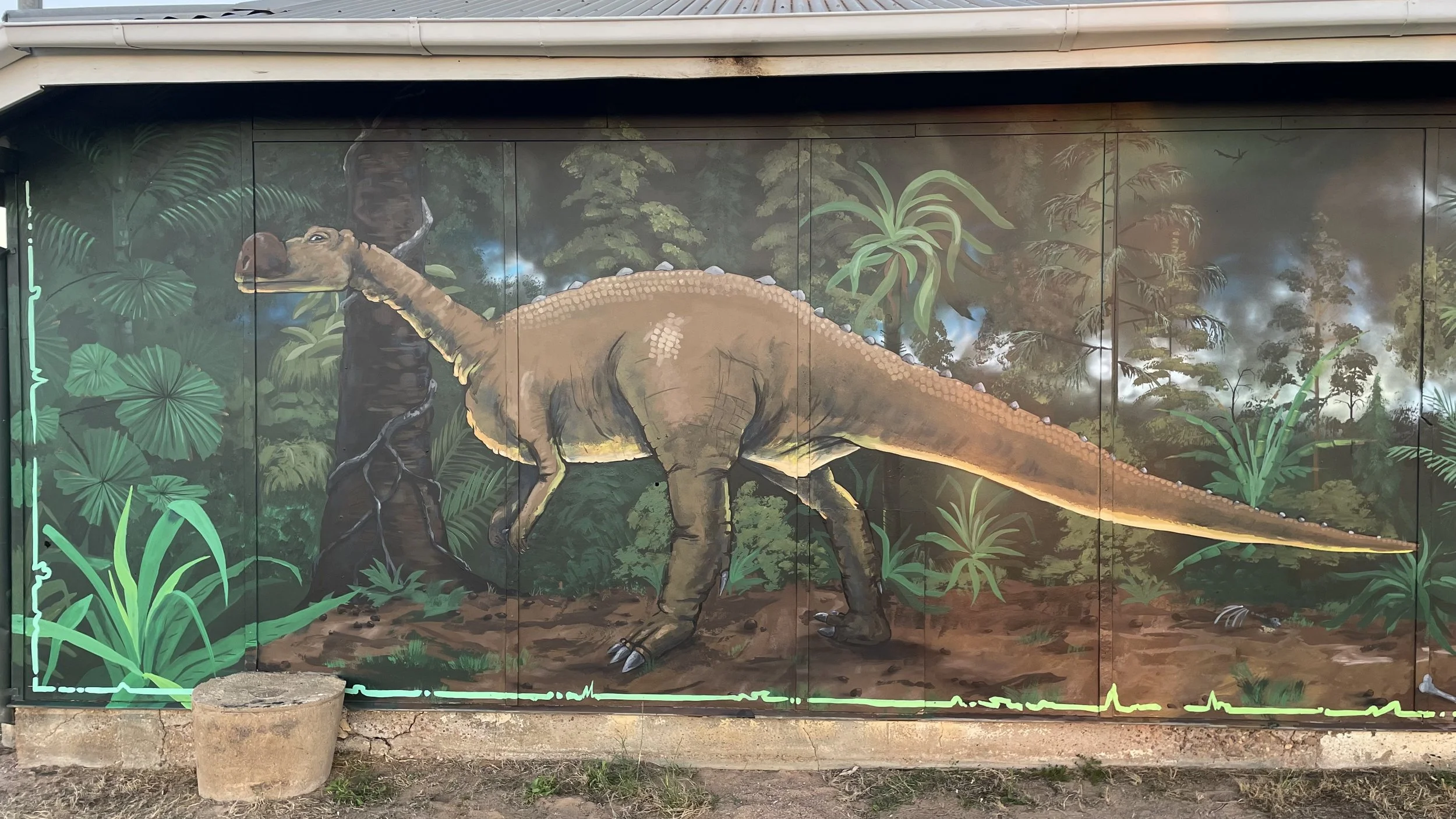 I completed a mural on the side of the old butcher shop featuring Muttaburrasaurus Langdoni which has recently become Queenslands official Fossil Emblem