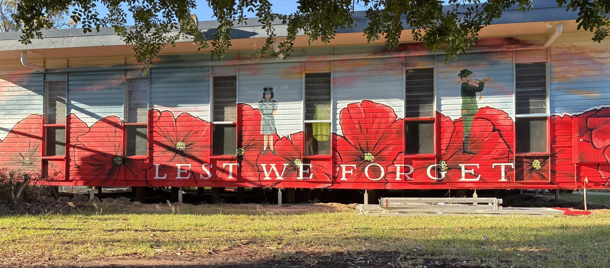 I channelled the enthusiasm of group members into the artwork and very much appreciate their hospitality and generosity throughout the process. Painters were busy, the gardens were tended and the area is looking great for upcoming Anzac Day services.